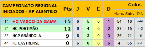 Classificação geral do Campeonato Regional Iniciados - AP Alentejo