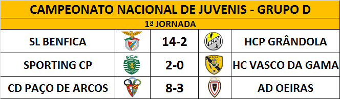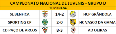 Resultados da 1ª jornada do Campeonato Nacional de Juvenis - Grupo D