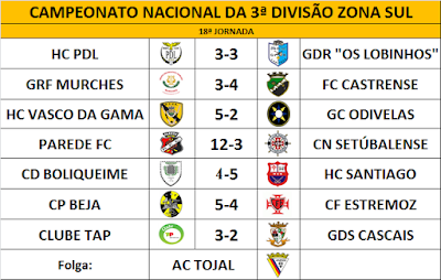 Resultados da 18ª jornada do Campeonato Nacional da 3ª Divisão zona sul