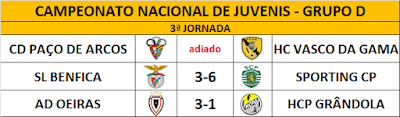 Resultados da 3ª jornada do Campeonato Nacional de Juvenis - Grupo D