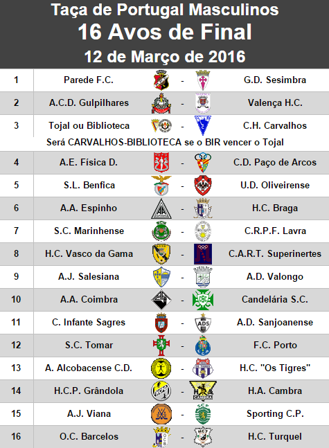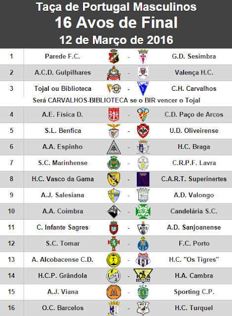 Todos os jogos dos 16 Avos de Final da Taça de Portugal
