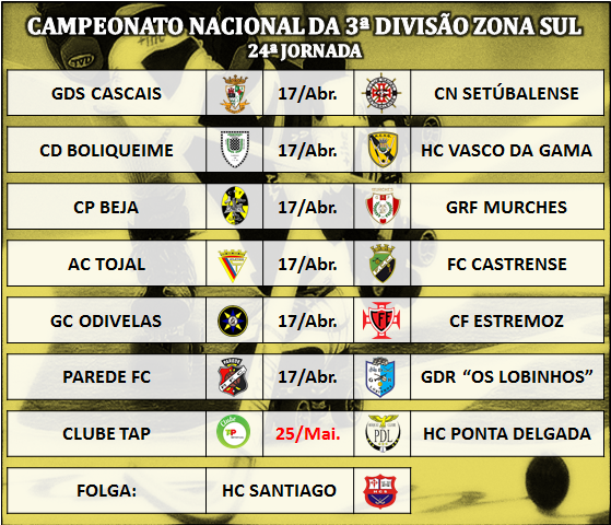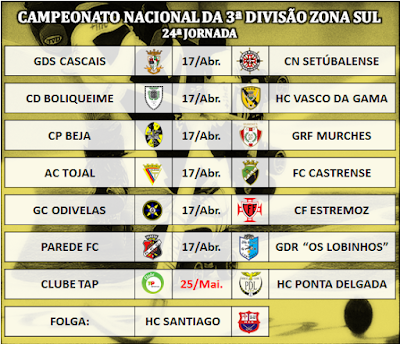 Jogos da 24ª jornada do Campeonato Nacional da 3ª Divisão zona sul